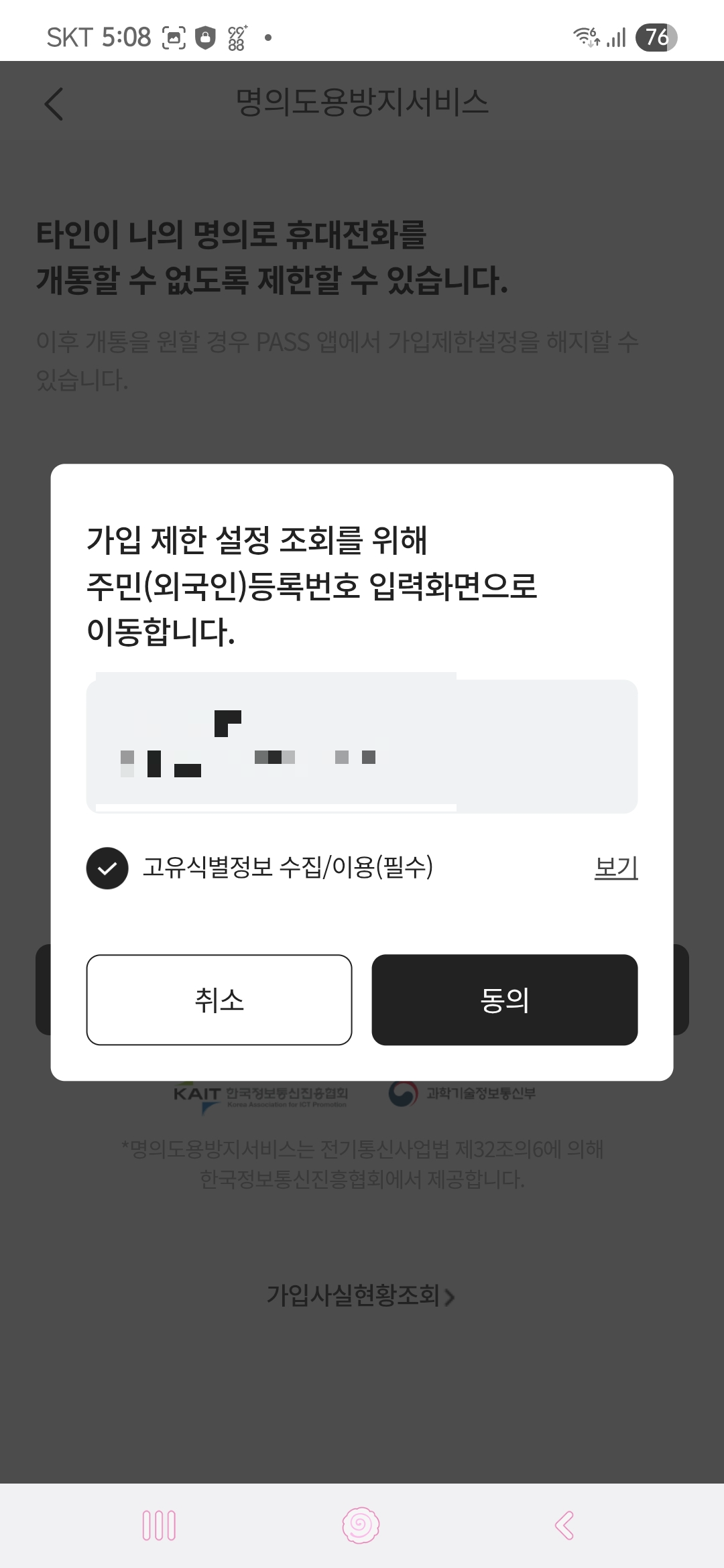 둘째, 설치 후 실행하면 휴대폰 번호 입력과 함께 본인 명의의 회선임을 확인하는 절차가 진행됩니다. 이때 문자 인증 또는 통화 인증을 통해 본인 여부가 검증됩니다.