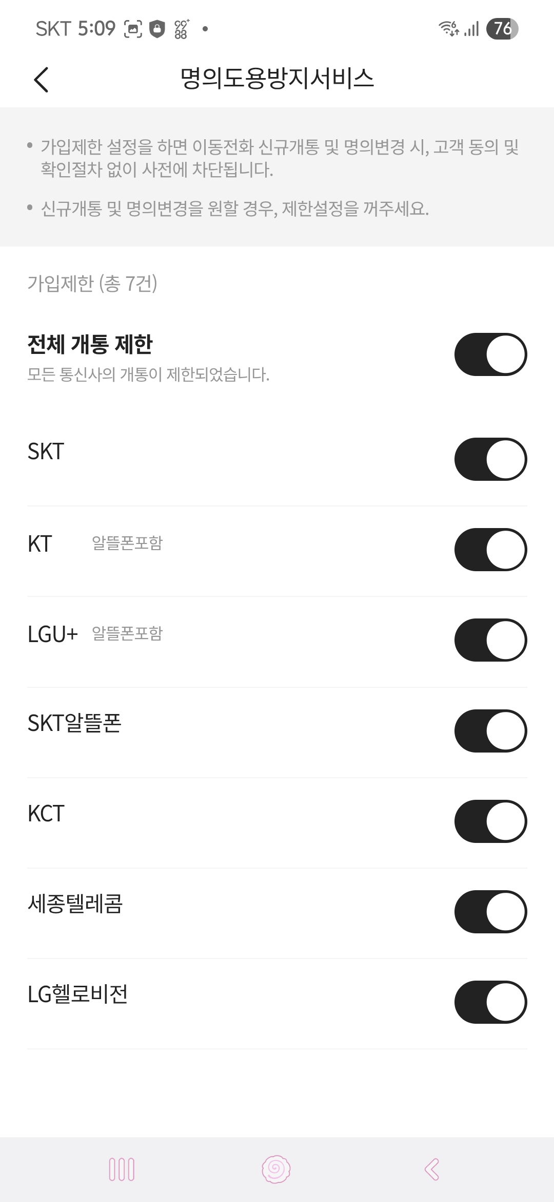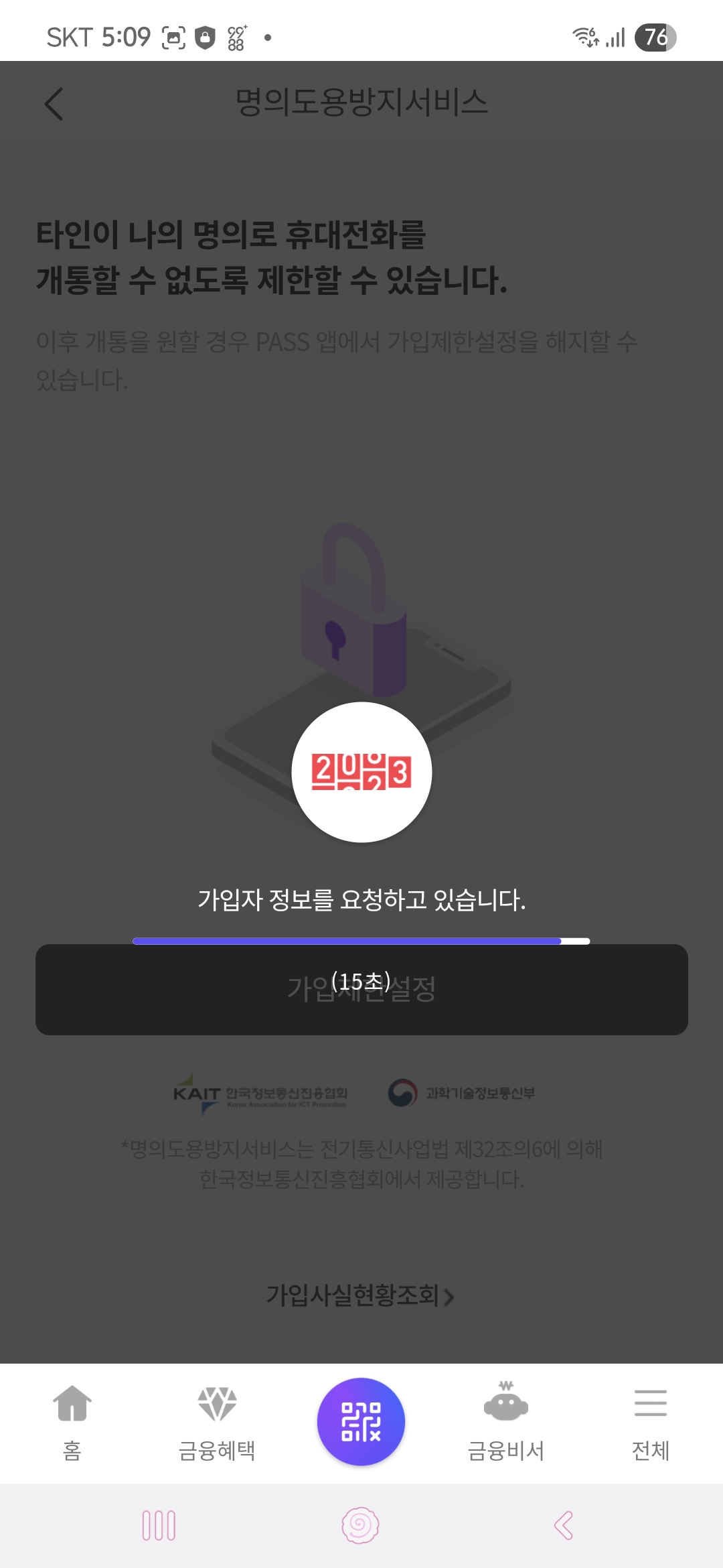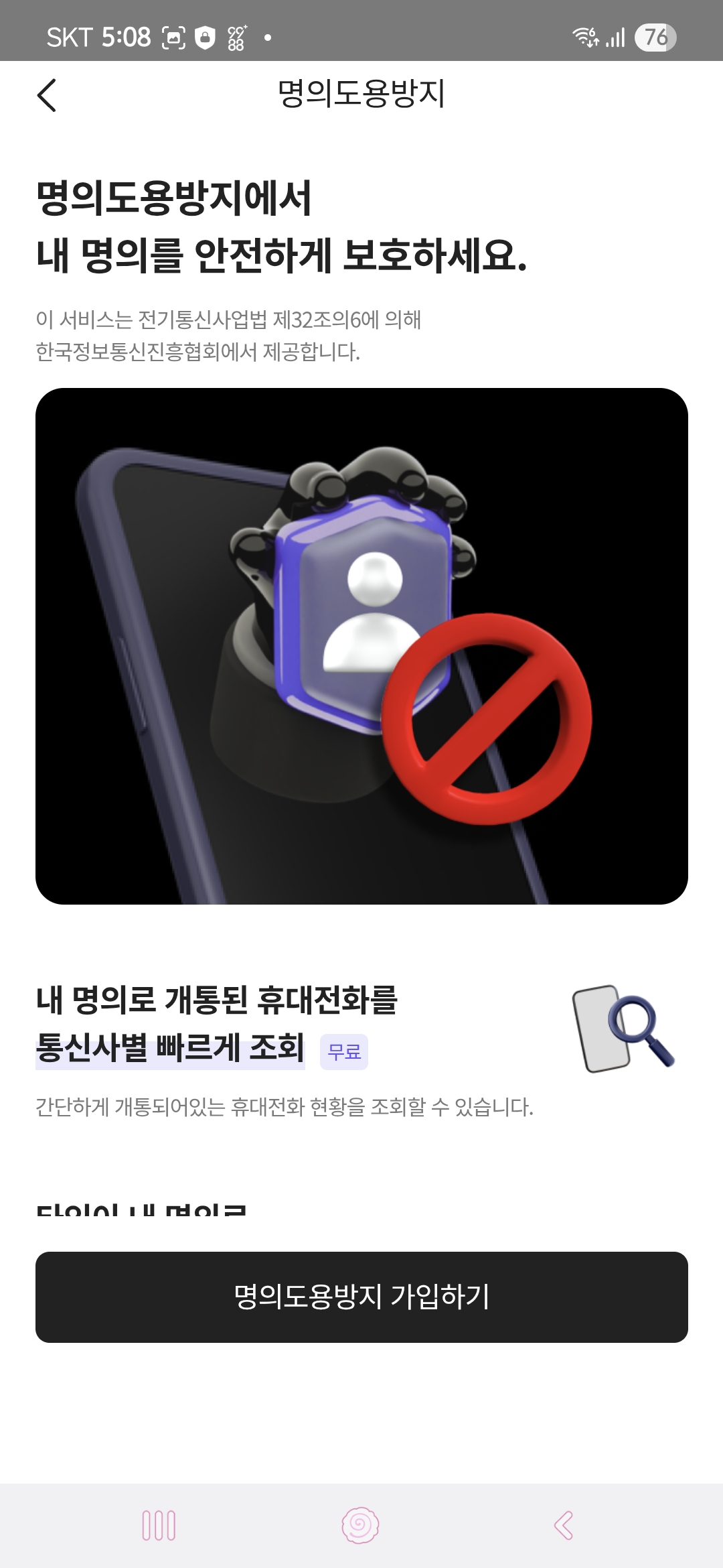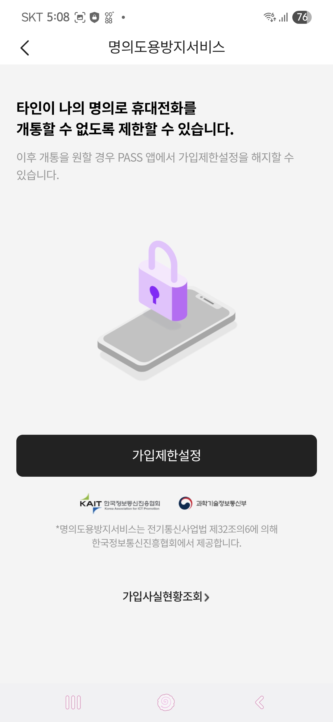 또한 이 서비스는 통신사 가입자 정보를 기반으로 운영되므로, 명의 자체가 도용되는 것을 원천적으로 차단하는 효과도 있습니다. 즉, 누군가 불법적으로 내 주민등록번호와 개인정보를 이용하려고 해도 PASS앱이 실시간 감시와 알림을 통해 사고를 예방할 수 있습니다.