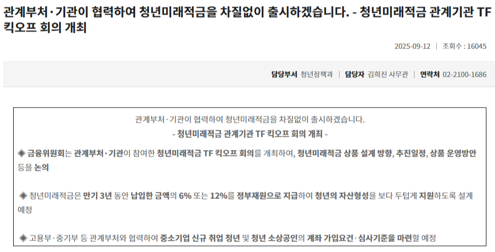 이러한 한계를 보완하기 위해 정부는 ‘청년미래적금’을 2026년 6월 출시할 예정입니다.