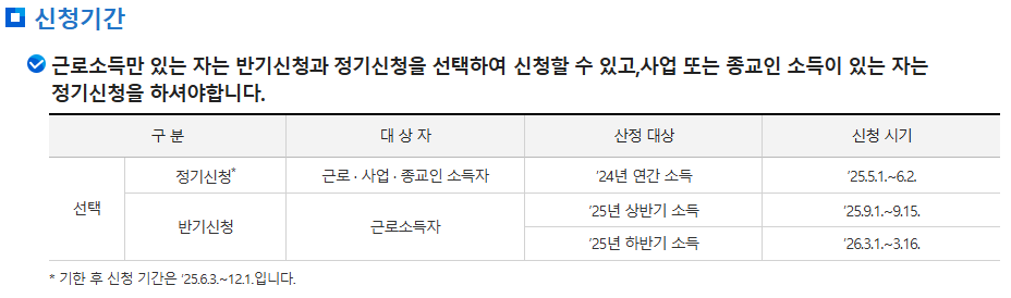 ● 상반기 소득분: 9월 1일~9월 15일 신청 → 12월 말 지급