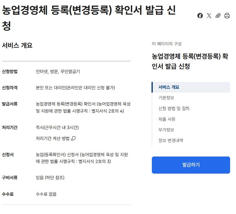 또한 최근에는 온라인 접수와 정보 변경이 가능한 농업경영체 통합정보시스템을 통해 절차를 간소화할 수 있습니다.