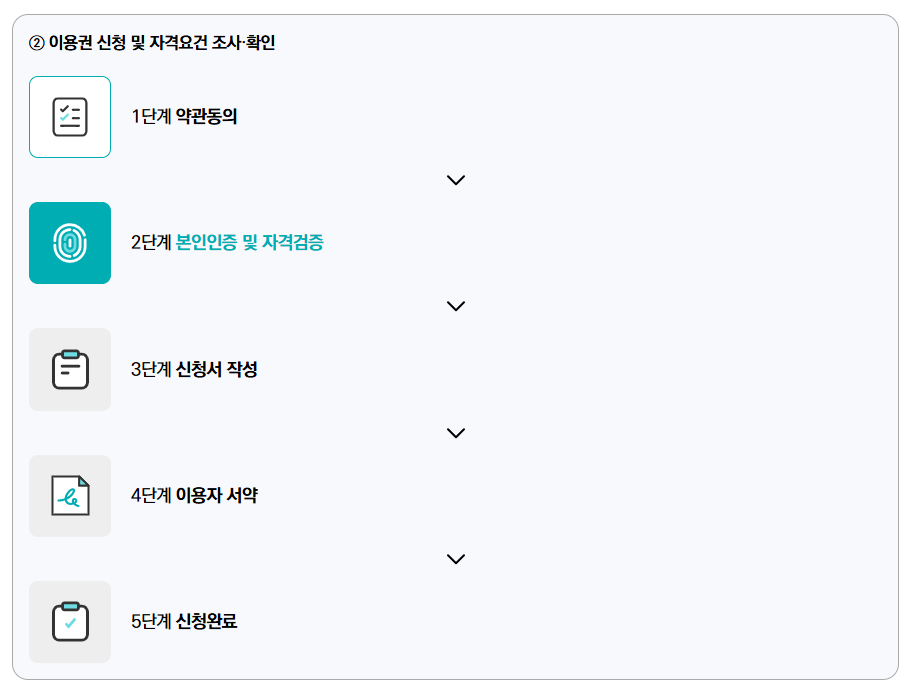 평생교육바우처 누리집 접속 →회원가입 후 본인인증 → 소득정보 및 가구 구성 정보 입력 → 신청서 작성 및 제출 → 심사 결과 확인