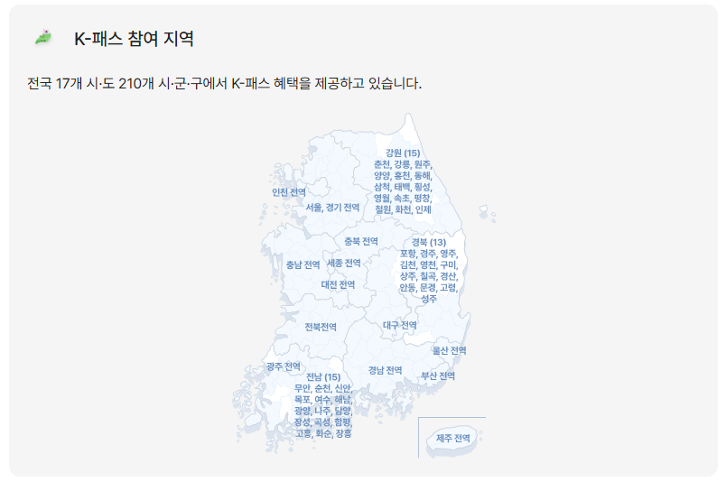 또한 K-패스는 전국 대부분의 지자체가 참여하고 있어, 수도권뿐 아니라 지방에서도 적용 가능한 경우가 많습니다.